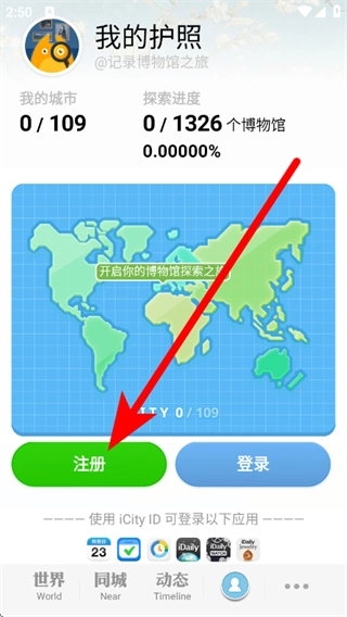 在我的页面点击注册,即可进入iCity ID账号的注册流程。