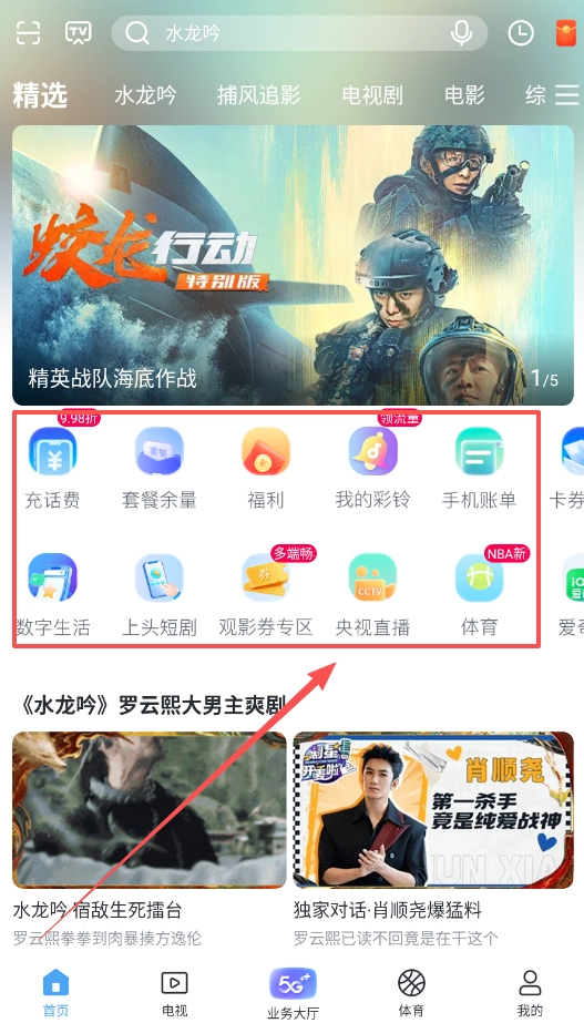 首页的“精选”板块集合了当下热门的影视作品和各类生活服务。你能直接点击《水龙吟》这类剧集的海报来追看剧集,一站式就能满足你的娱乐消遣和日常生活所需。