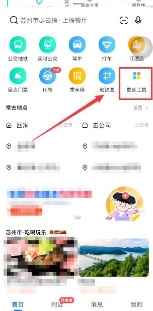 打开高德地图,在首页向上滑动屏幕,选择“更多工具”选项。