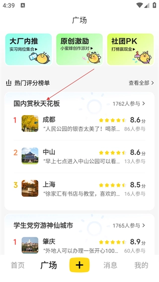 在广场页面,找到【国内赏秋天花板】榜单,点击进入榜单详情页。