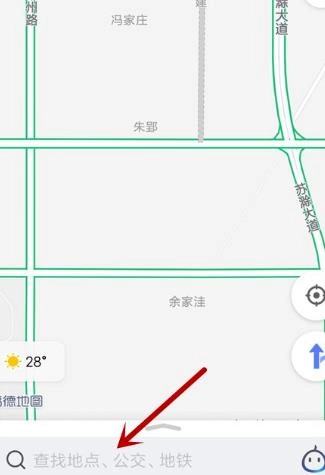 打开高德地图主界面后,点击底部的搜索框,然后输入想要查找的地点进行搜索。