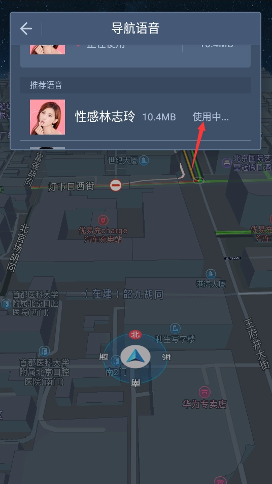 完成操作后,切换至上方的“我的语音”界面,就能将导航语音包更换为小团团的版本了。