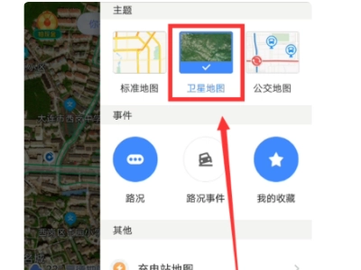 三、在切换界面里,我们要找到“卫星地图”这个选项,具体可参照下图。
